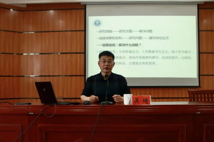 首先,吴琦教授向大家阐释了学养的概念——学养是内化于思想、意识、观念和思维之中的素质涵养和整体气质。厚实的学养能给阶段性专业问题的解决以坚实支撑。同时,吴琦教授结合学生群体的实际情况,从问题意识、对话意识、前沿意识、完善的学科知识结构和人文情怀五个方面对学养的培育进行阐述和分析。