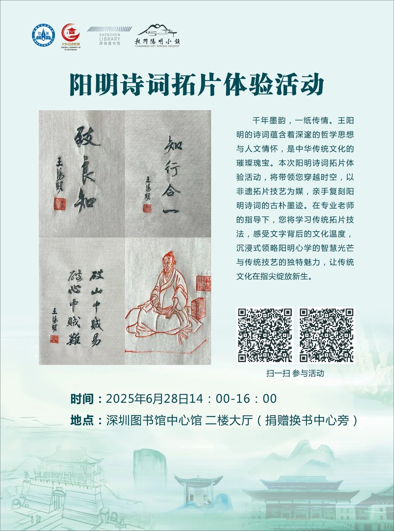 深赣两地,文脉相连,携手共促文化繁荣。为深化深圳与赣州对口合作,加强两地文化交流,推动哲学社会科学发展,深圳市社科联(院)、赣州市社科联、中国明史学会王阳明研究分会定于2025年6月28日在深圳图书馆联合举办“赣州阳明文化深圳行”系列活动。