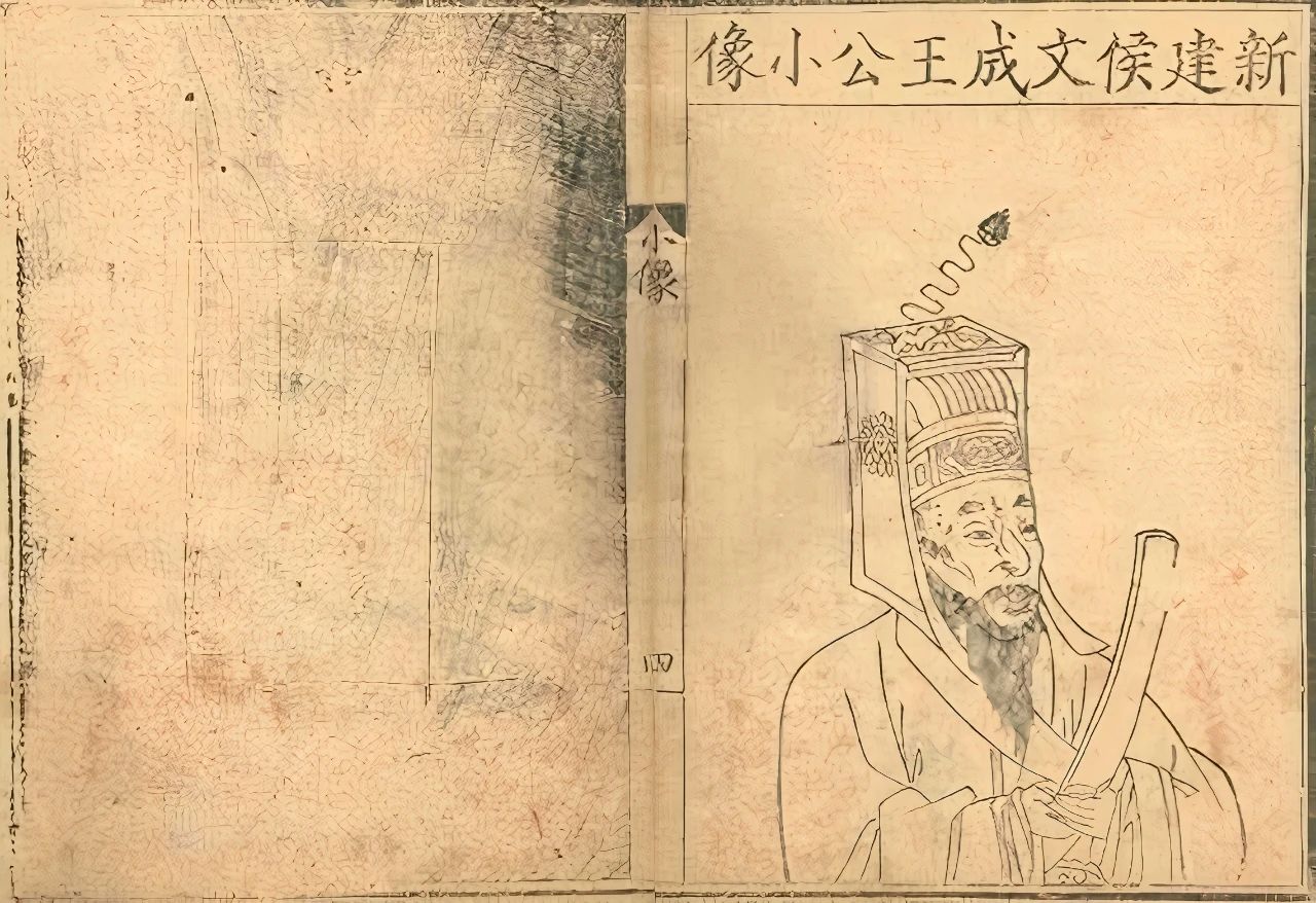 这三种藏本中“新建侯文成王公小像”叶为补版重刻。首先,小像的面部均朝向左侧,位置偏上(见图4),而国图本和天图本朝向右侧,位置偏下(见图5);其次,小像叶多出五篇像赞;再次,此叶版心没有文字,而国图本和天图本有“小像”和“四”字。