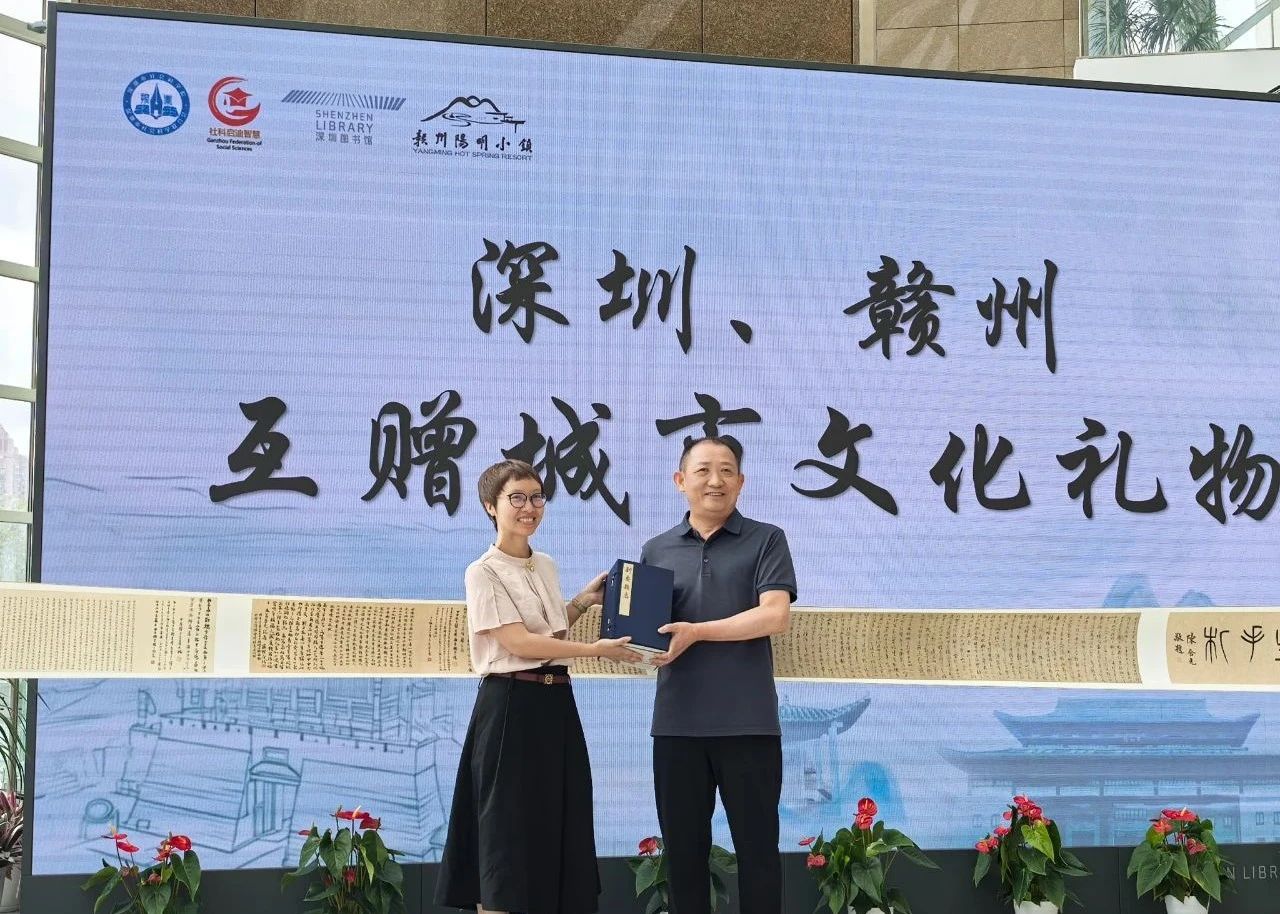 启动仪式上,王建冬、何新红分别代表赣州、深圳作活动致辞;赣深互赠文化礼品——赣州阳明小镇向深圳图书馆赠送“荣宝斋非遗木版水印——王阳明《南赣家书》”,深圳图书馆向赣州阳明小镇赠送《新安县志》,以文献载体见证两地文化根脉联结。
